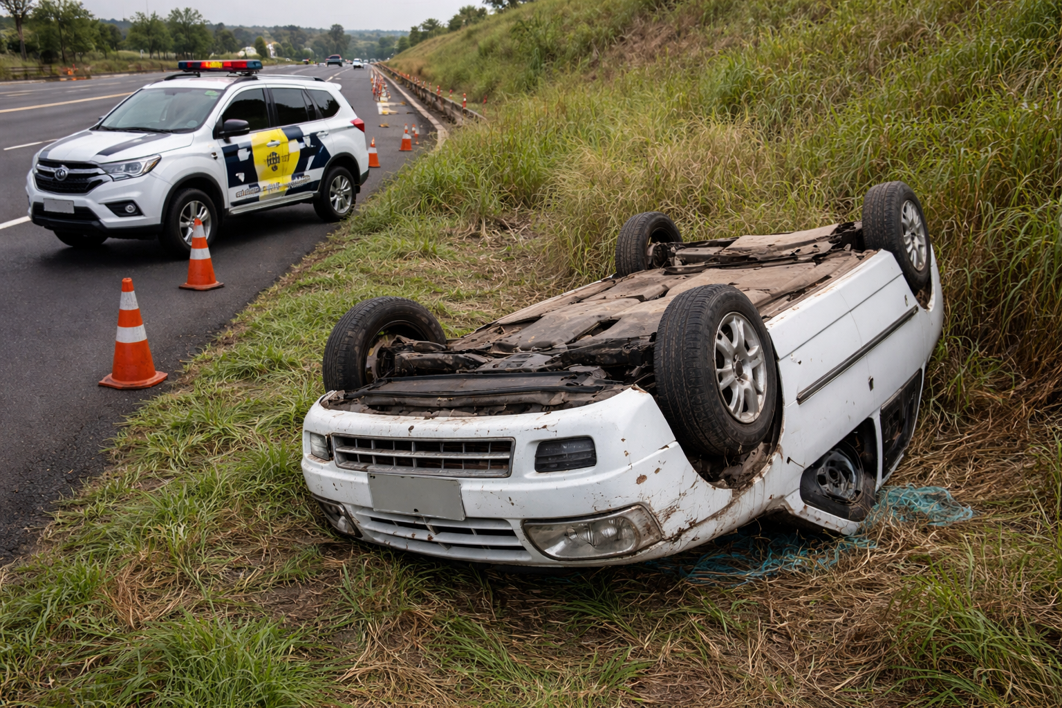 Ainda na manhã de segunda-feira, a Polícia Militar Rodoviária foi acionada via COPOM para atender um acidente de trânsito na Rodovia Euclides da Cunha. No local, os policiais constataram que o veículo envolvido no capotamento era o mesmo que havia sido furtado horas antes. O automóvel foi encontrado capotado, sem condutor e sem vítimas no local.